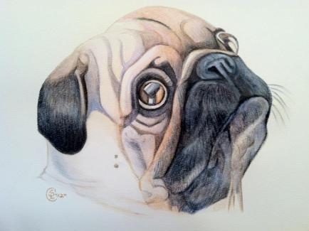 "Pugs ~ 8x10 Watercolor and Ink on Watercolor Paper"