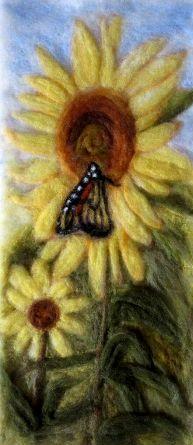 "Sunflower & Friend ~ 2D Needle Felt Wall Hanging" -